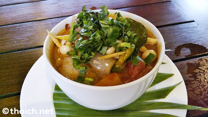 絶対に欠かせないのが、嘘か真か世界3大スープの一つとも言われる辛くて酸っぱい海老のスープ「トムヤムクン(Tom Yum Kung,ต้มยำกุ้ง)」。「トムヤムクン」の詳細な価格は失念しましたが、料理はどれも300バーツほどなので日本円にして1000円くらい。お求めやすい価格です。