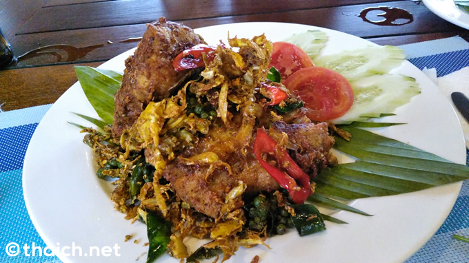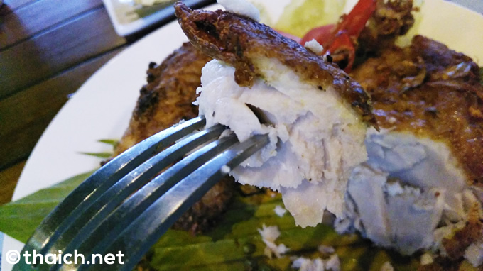 キング・マカレルのターメリックとニンニクマリネ揚げ「inSea tord khamin,inSea ทอดขมิ้น」(280バーツ)。こちらも日本円にして1000円足らずなのに、相当のボリュームです。