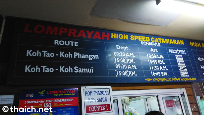 パンガン島行きフェリーのチケットは、タオ島初日に旅行会社で手配済み。15時発のLOMPRAYAH社のフェリーが500バーツでした。ちなみにLOMPRAYAH社のチケットオフィスで手配しても、同価格のようです。