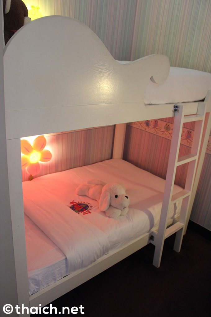 子供用の部屋には可愛いベッドと玩具で遊べるスペースがあります。子供専用のバスルームには、ちゃんと低い位置にシャワーが設置されています。