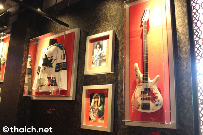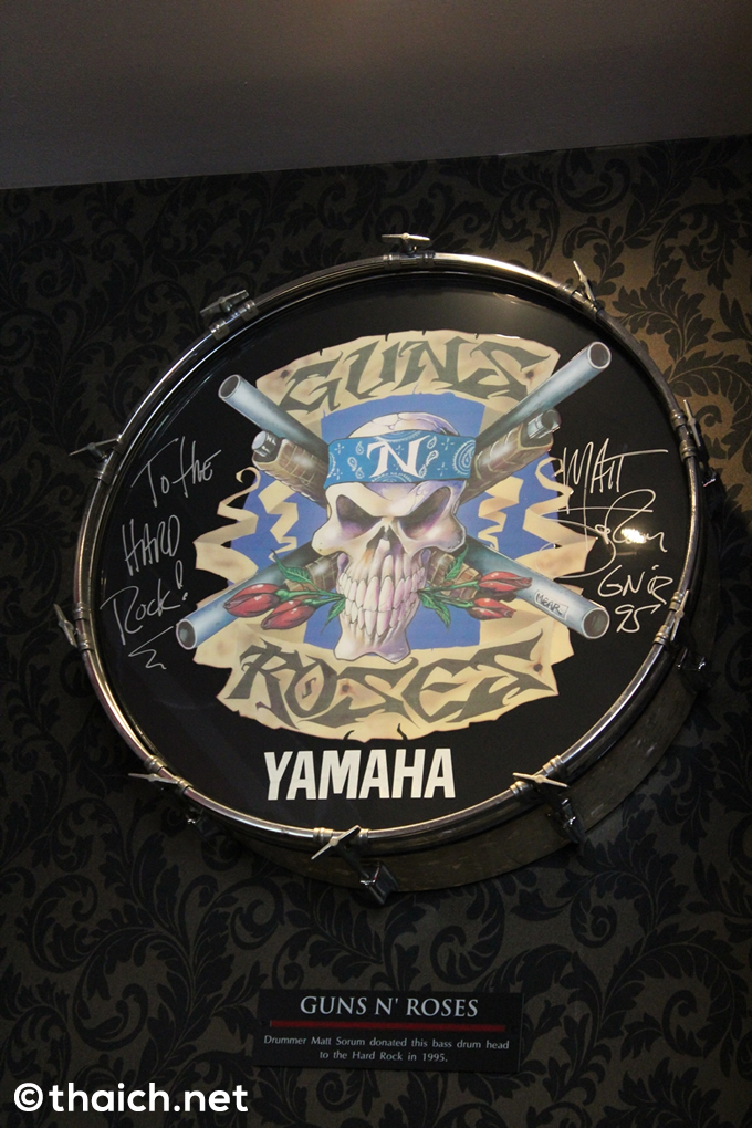 「ハードロック・カフェ」にもホテル同様に、ヴァン・ヘイレンやガンズ&ローゼズなど有名ミュージシャンたちの愛用アイテムが壁のいたる所に飾ってあります。食事の際には要チェックですね!
