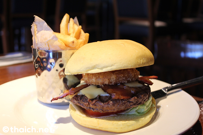 じゃ~ん、「オリジナル・レジェンダリー・バーガー」(499バーツ)です!パティにベーコン、チェダーチーズ、野菜が挟んである王道のアメリカ式バーガー。