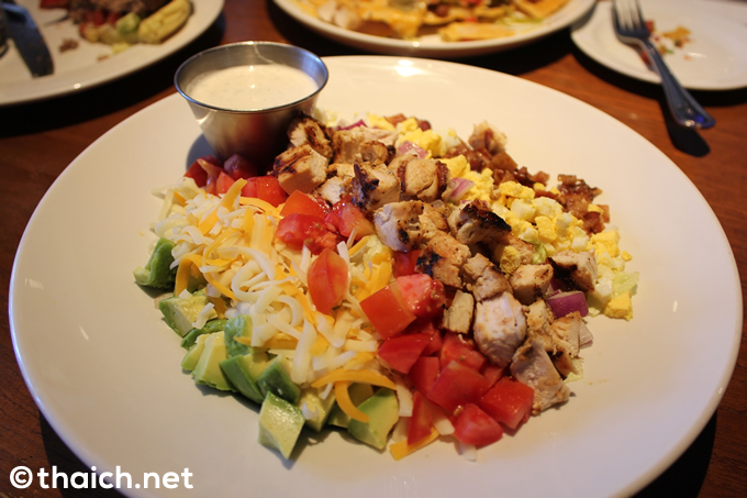 「コブサラダ」(379バーツ)もボリュームたっぷり。チキンやチェダーチーズ、トマトなど具材がたっぷりです。