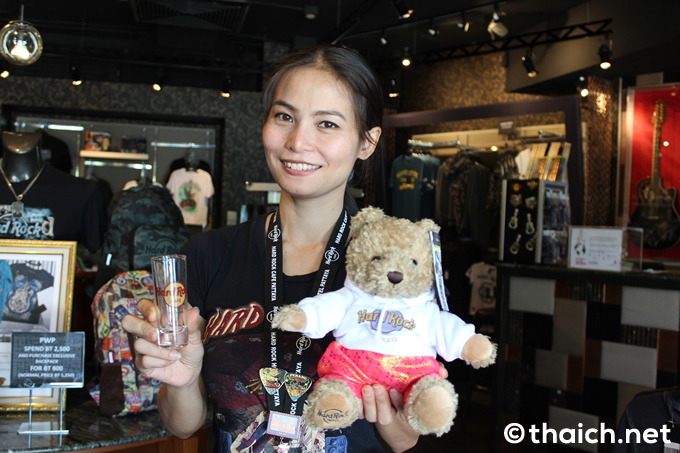 やっぱりハードロックのロゴが入ったTシャツが売れ行きナンバー1。それに続くのがショットグラス(350バーツ)と熊の人形(1,400バーツ)だそう。
