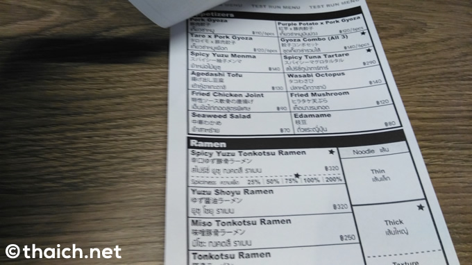 オーダー表の中で気になったのが790バーツの「トリフラーメン」。恐らくラーメンに、たっぷりのトリフがトッピングされているのでしょう。次に「ゆずラーメン」に行く機会があれば、ぜひ「トリフラーメン」にチャンレンジしたいですね。