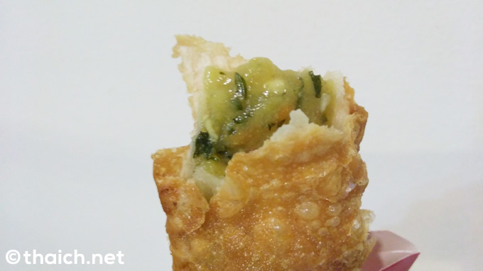 タイのレストランで食べるグリーンカレーは激辛なことが多いですが、このパイのグリーンカレーは甘口。いや、辛さ控えめ、というか辛さはほとんどないと言って良いかも。「グリーンカレーは辛くないと駄目!」という人には物足りないでしょうが、気になる方はお試しを。
