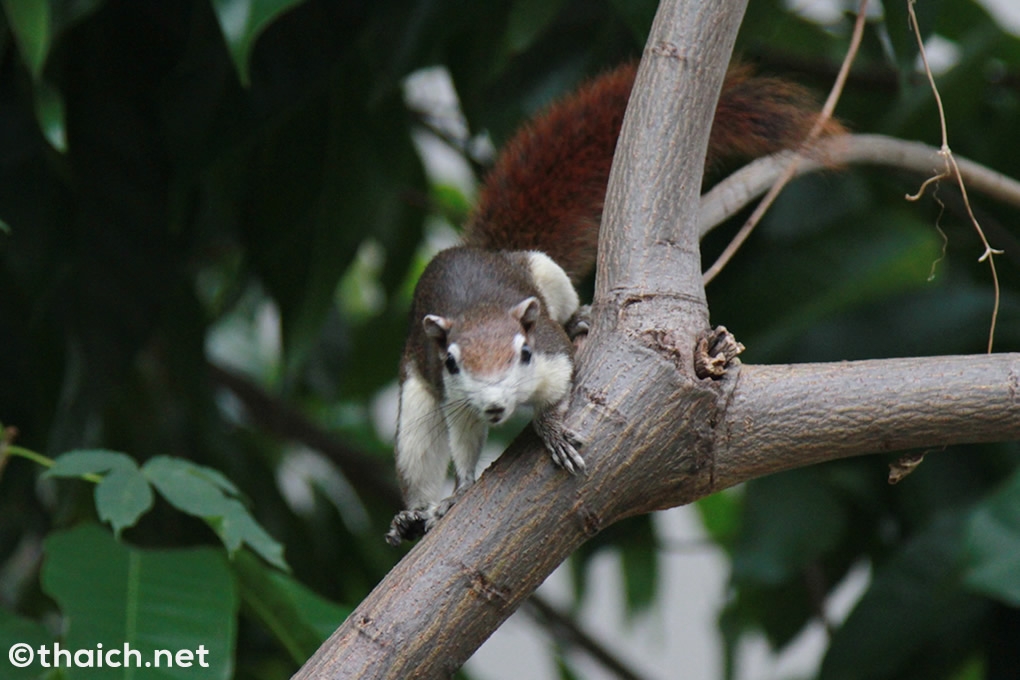 大都会バンコクでも、庭などがある住宅地や公園では、度々野生のリスを見かけます。我が家の隣の家にもリスが棲んでいて、特に早朝に活発に動く姿が見られます。