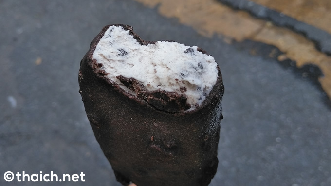チョコレートのコーティングの中は、OREOのクッキー&クリームアイス。美味しさはもちろん、OREOのざらっとした舌触りがたまらないんですよね。もう一つ食べてしまいたいところですが、我慢です(笑)。