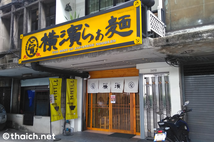 バンコクのBTSバンナー駅の前で、「横濱らぁ麺」と書かれた黄色い看板のラーメン店を発見。ちょうどお昼時だったので入ってみました。