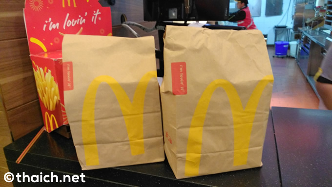 ちなみにマクドナルドではビニール袋の提供が中止になっているのか、紙袋のみで出てきました。ショッピングバッグは持ち合わせていなかったので「ビニール袋をください」とお願いしたのですが、置いていないとのことでした。