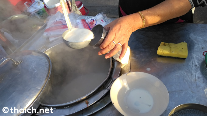 こんな日の朝は、屋台で温かい豆乳を。砂糖やタピオカなどをたっぷり入れた、スイーツ風の豆乳も美味しいですよね。一袋10バーツです。