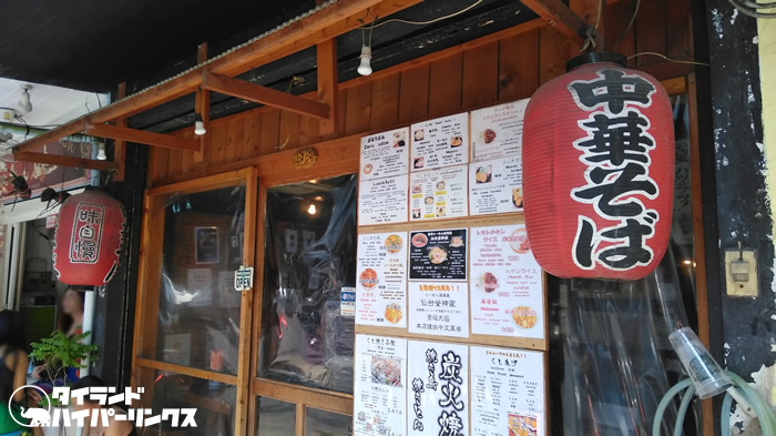 「釜神家」があるのはマッサージ店がならぶ、あの辺り。店頭でメニューを眺めていると、隣のマッサージ店の店員の女性が「オイシイヨー」と言うので、入ってみたのです(笑)。