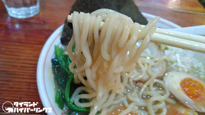 スープはメニューによると、濃厚鶏豚白湯。ほうれん草と大きな海苔が乗って、麺は太め。いかにも「家系」ですね。たま顔が1個半なのも、なんだか嬉しいです。なかなか好みの味で、スープまで飲み干し、完食です。