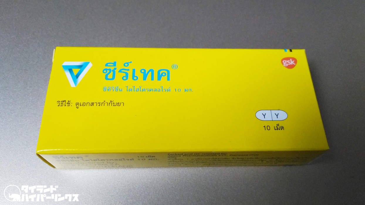 病院でもらった分を飲みきったので、近所の薬局で「ジルテック(Zyrtec)」を購入。10錠入りで130バーツ(約450円でした)。