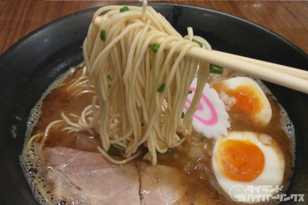 この日オーダーしたのが240バーツの「魚豚そば味玉」と40バーツの「烏龍茶」。なお、会計時に税金7%とサービス料10%がかかります。