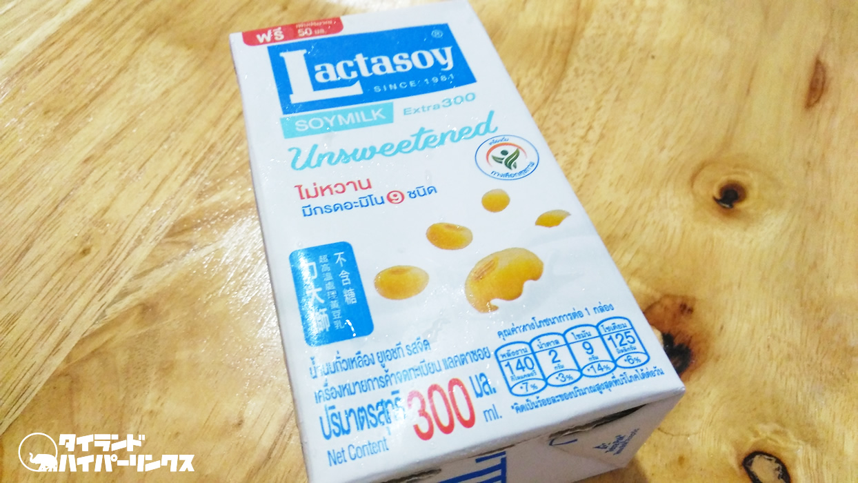 普通パートンコーは豆乳と一緒に売られていることも多いですが、この屋台はパートンコーのみ。実はいつもは近くに熱々の豆乳の屋台があるのですが、この日はお休み。なのでコンビニで冷たい豆乳を購入です。ちなみにこのLactasoyの豆乳は砂糖が入っていなくて、甘くありません。