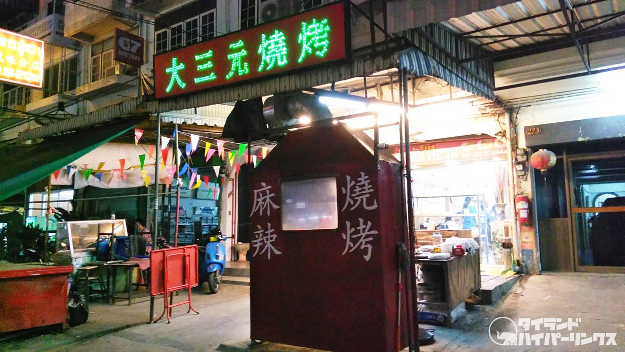 この日に訪れたのは、プラチャーラートバンペン通りを東に向かい、さらに行き止まりを右に向かって進んだ左手にある「大三元焼烤」 という店。深夜3時まで開いていると聞いて、遅くまで飲んだ後に、もう一軒ということ訪れてみました。