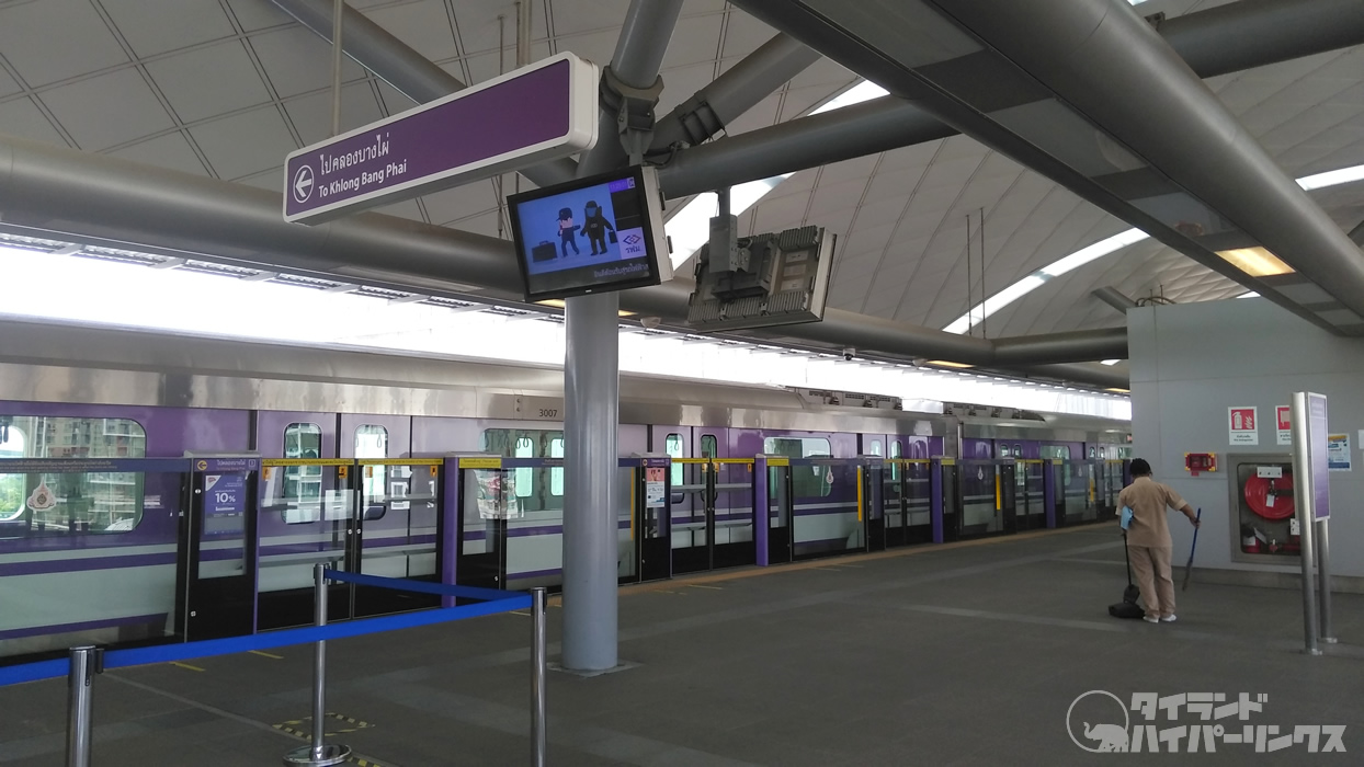 2016年8月6日にタオプーン駅からクロン・バンパイ駅まで開通したMRTパープルライン。タイプーン駅ではMRTブルーラインと接続しており、ラッシュ時には多くの利用者で賑わっています。大型ショッピングセンターのセントラルウェストゲートやIKEAへ行くにも、このMRTパープルラインを利用するのが便利です。