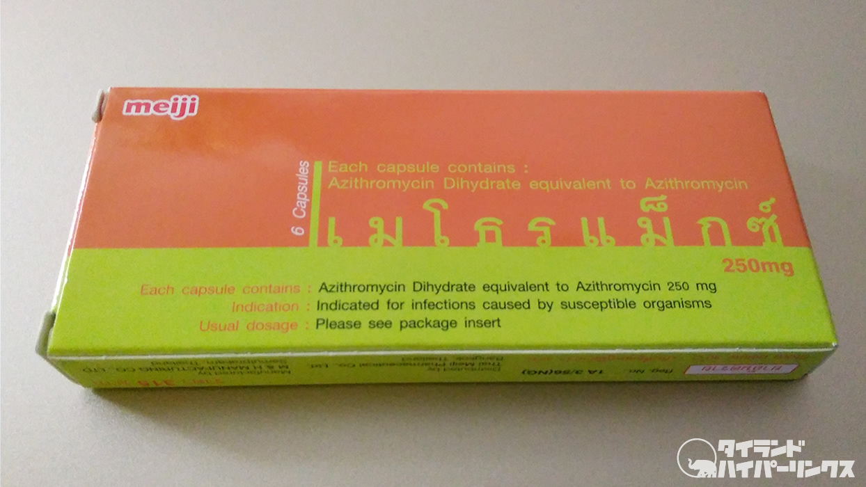 「Meithromax」は6カプセル入りで、280バーツ。タイで買う薬にしては高い印象です。