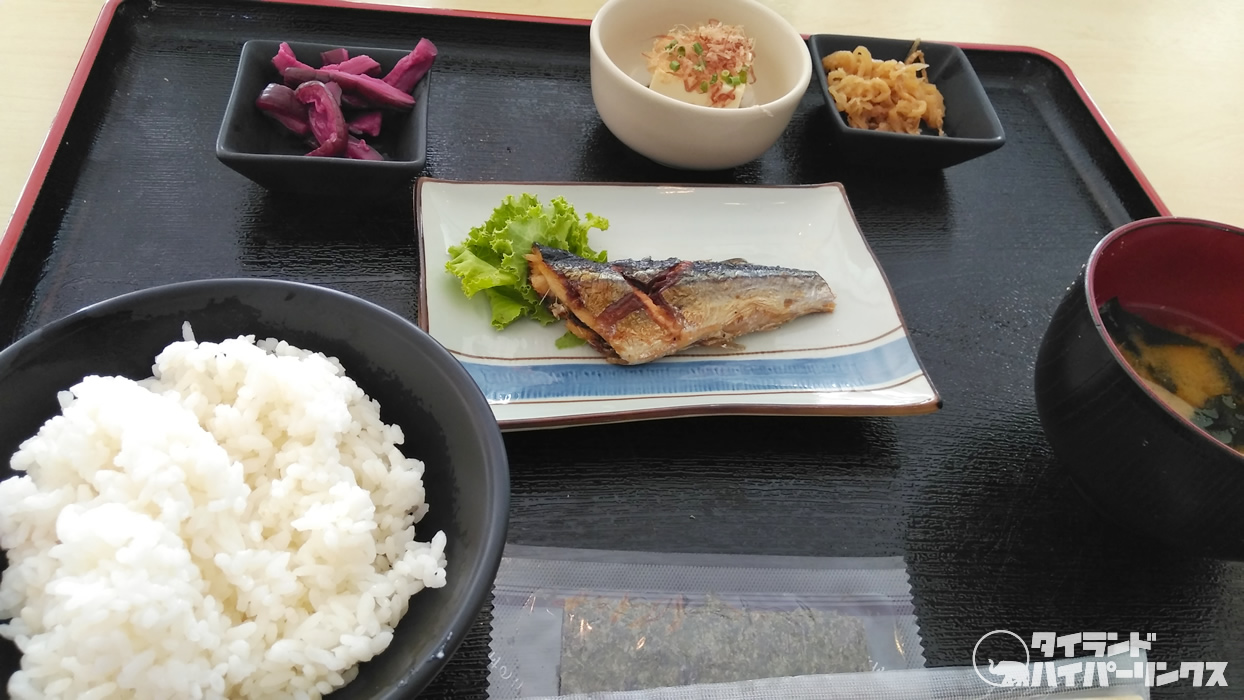 朝食の時間は朝5時半から9時半までで、特に注文がなければ和朝食セットになります。シンプルですが、朝ならこれで十分。ご飯とお味噌汁はおかわり可能です。納豆もお願いすれば出てくるそうです。久々のサンマ旨っ!!