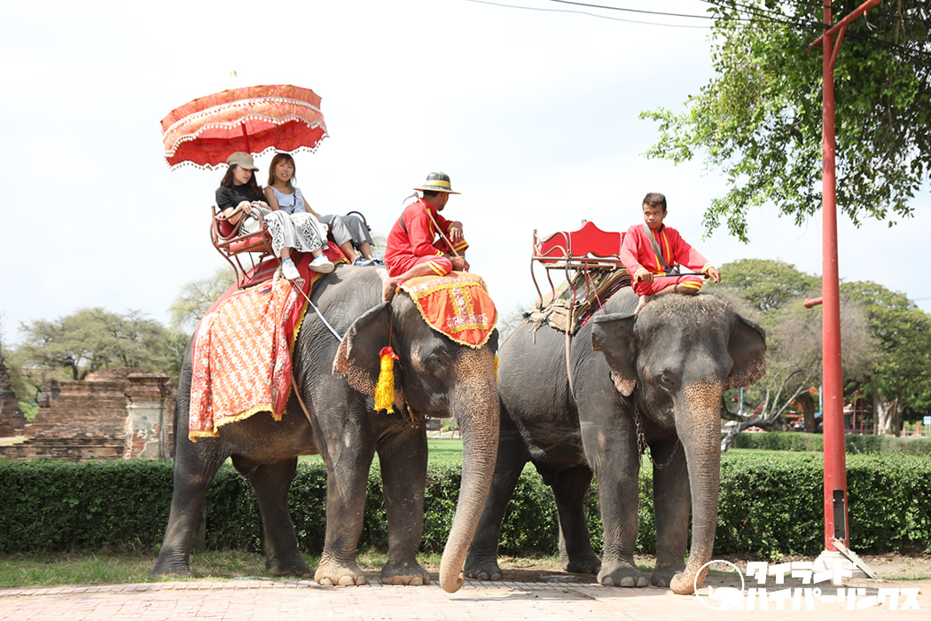 遺跡を眺めながら、象に乗ってお散歩というのも可能ですよ。象に乗ったことがない方は、ぜひ挑戦すべきですね!