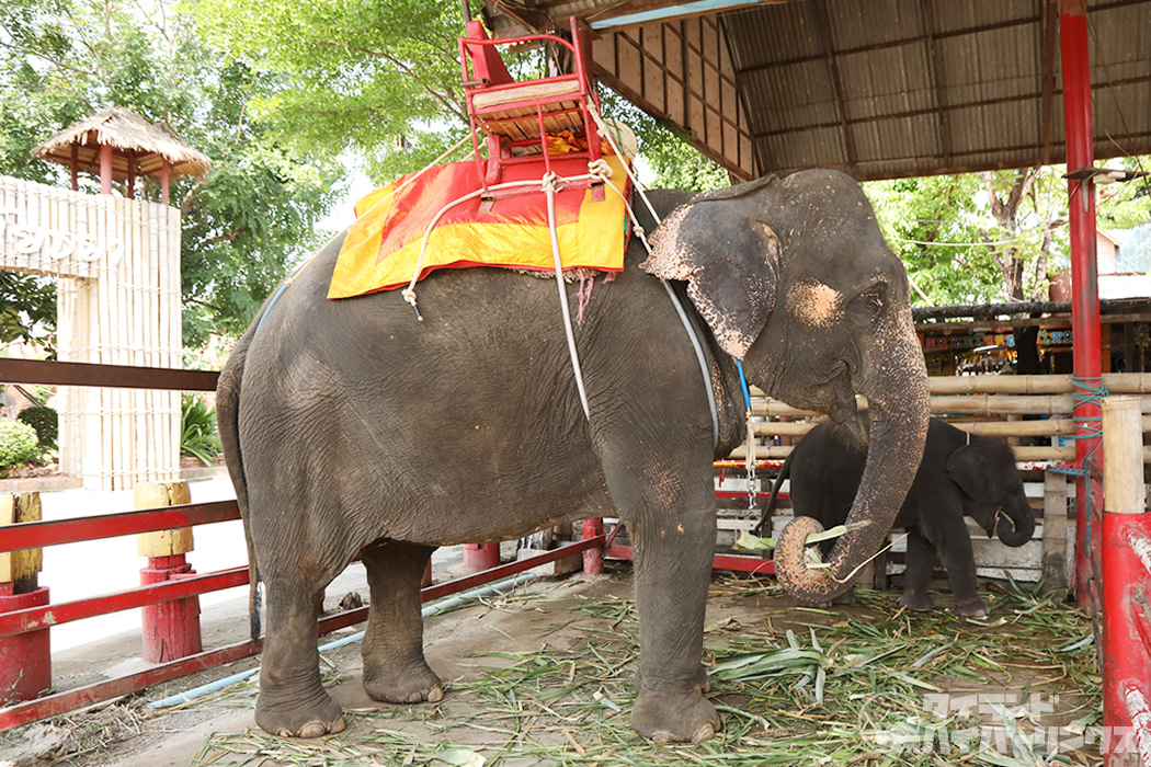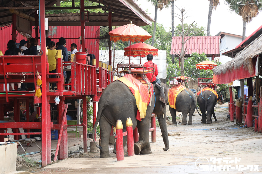 続いて運転手さんが連れて行ってくれたのが、入場料金200バーツの「アユタヤ水上マーケット」。しかしそこには入らず、すぐ横のマーケットへ向かいました。ここでも象乗り体験ができます。