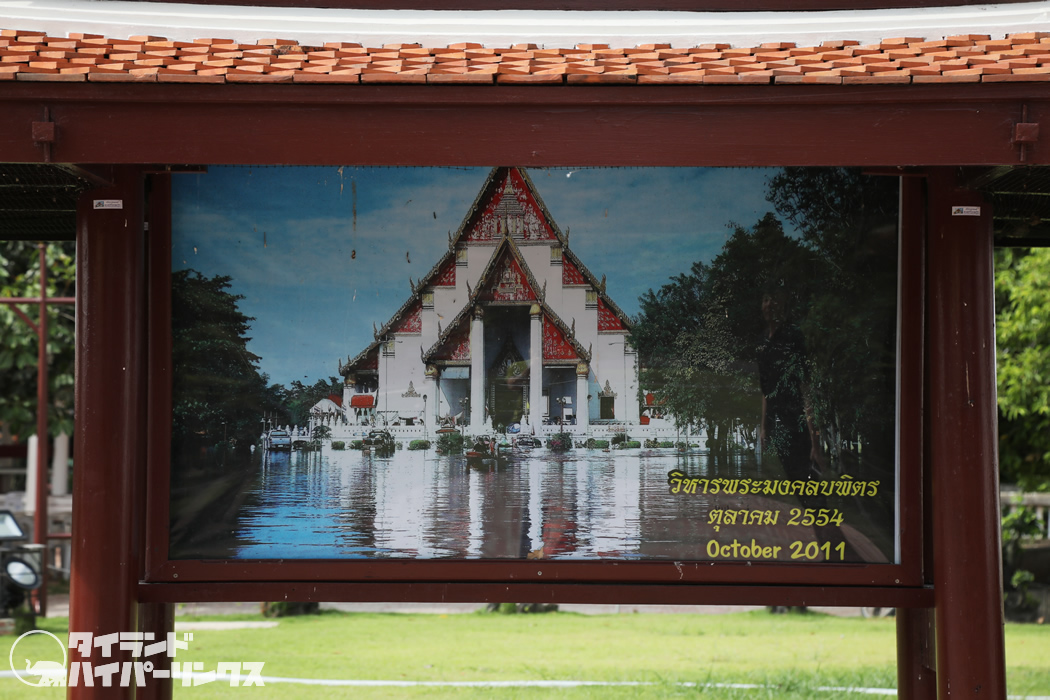 ちなみに2011年の大洪水の際は、本堂の前まで水に浸かっていたようです。まるで池の中の寺院ですね。
