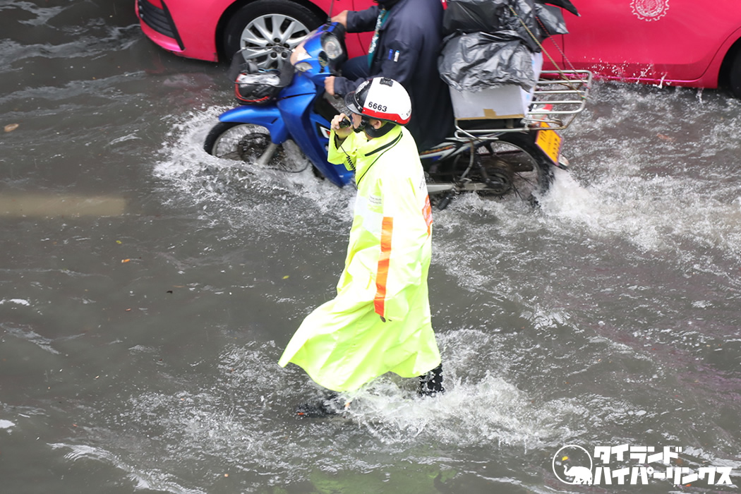 良い靴を履いている人は、靴が濡れないように靴を脱いで裸足で歩いていましたが、ゴミも多いバンコクの道路ですので、怪我をしないように注意が必要ですよ。