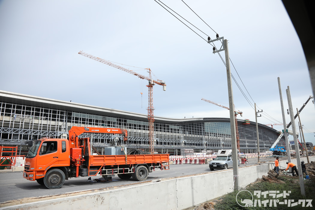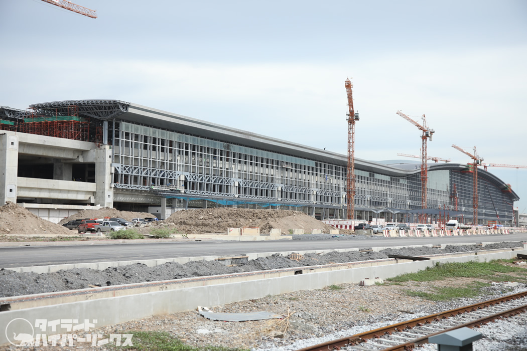 新バンコク中央駅となるバンスー駅は、2021年のオープンへ向け、現在建設工事中。その工事の様子が、鉄道の中から見ることができました。鉄道は地方からバンコクに入ると走るスピードが遅くなるため、工事中のバンスー駅の様子もゆっくり眺めることができました。