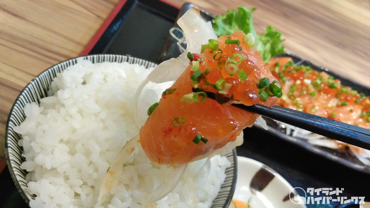 そんなわけで、次回は20バーツをプラスして、「サーモンイクラ重定食」(240バーツ)を注文しようと決めたのでした。