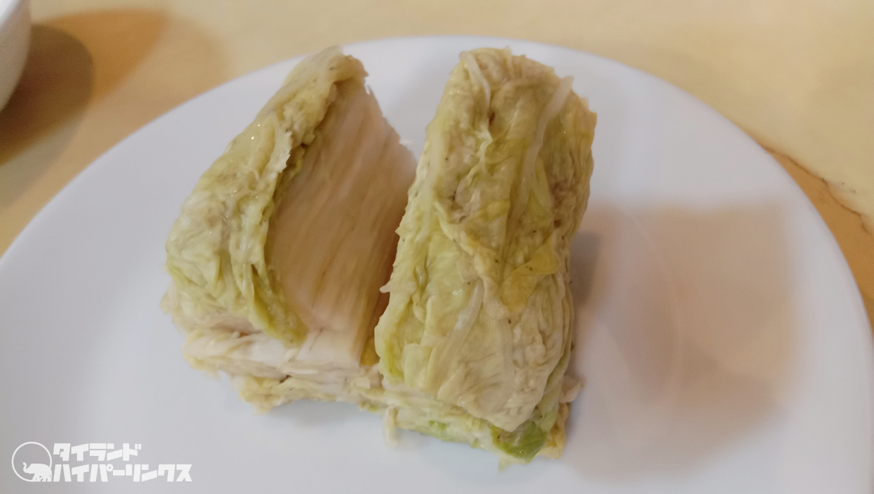 使い勝手が良いというのは、場所の良さももちろんですが、なんと言ってもリーズナブルな価格。なんと白菜の「おしんこ」は50バーツで結構ボリュームもあるんです。これと120バーツの「シンハビール(中)」を頼んで昼飲みスタート!