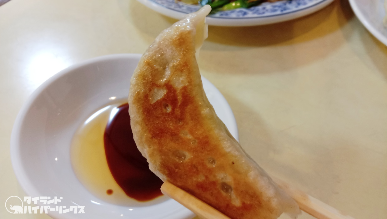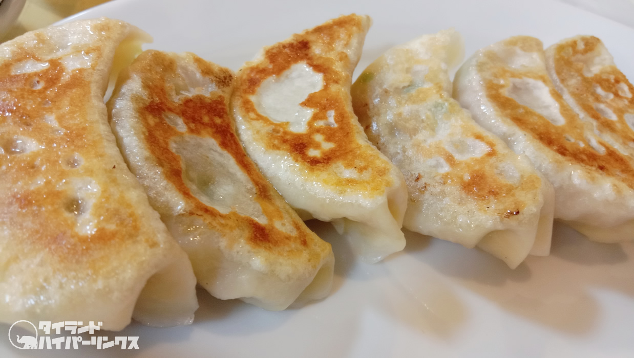 続いて「餃子」は80バーツ。形もよく、キレイに焼けています。
