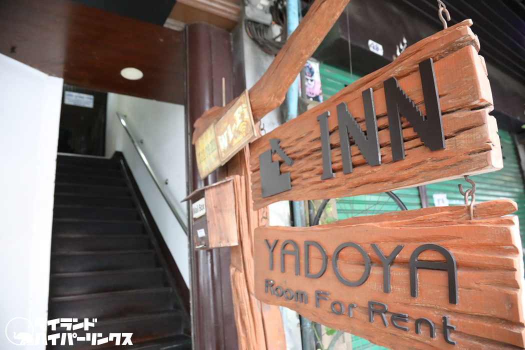 多くの日本料理レストランが出店し、お洒落なカフェが並び、バーやパブなど人気の夜遊びスポットが点在するトンロー通り。そんな中でポツンと見えた「宿屋」の看板。実はここは「宿屋」という名前が示す通り、ホテル(ゲストハウス)なんです。小さな入口からはまるで想像できませんが、なんと客室が30部屋もあるんですよ。