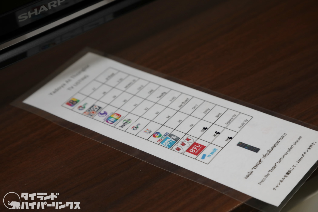 日本のテレビ番組が見られるのも嬉しいサービスですね。NHK、日本テレビ、テレビ朝日を見ることができます。フッカフカのベッドに寝転びながら、テレビ三昧のバンコク滞在も悪くないかも(笑)。