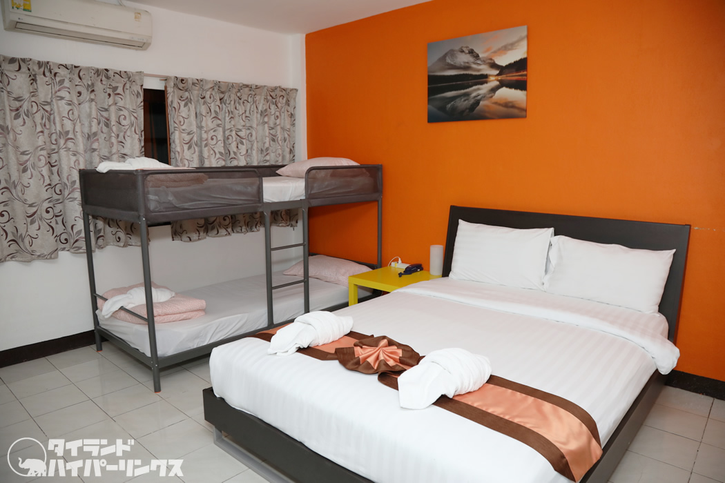 2段ベッドありの、1500バーツのクアッドルーム。4人部屋ですね。家族でバンコクを訪れて、一泊1500バーツ(約5000円)。宿泊費を節約して、その分買い物をしたり、色々観光するというのも絶対にありですね!