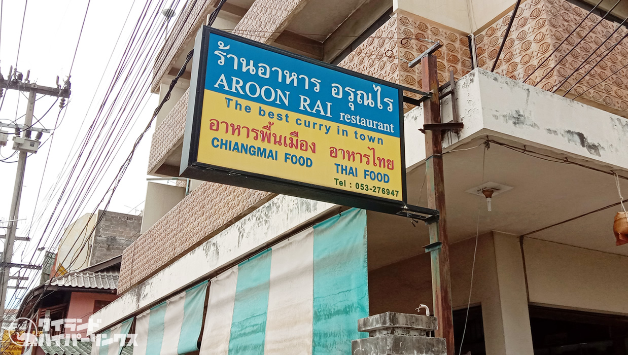 ということで向かったのが、美味しいゲーンハンレーが食べられるという「アルンライ(AROON RAI)」という名のレストランです。いや、食堂と言ったほうが相応しいかも。看板には「The best curry in town(街一番のカレー)」と書かれています。期待大!