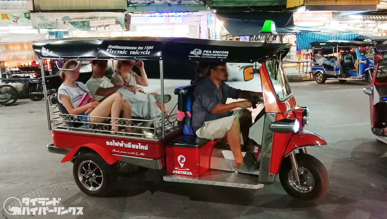 この電気自動車化されたトゥクトゥク。チェンマイではたくさん見かけますが、全部ではないようですね。そのうちバンコクも含めて、すべてのトゥクトゥクが電気自動車化されるのでしょう。