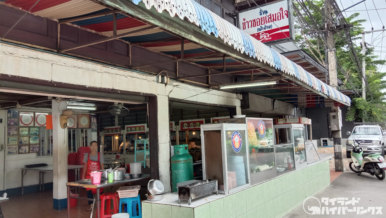 せっかくチェンマイを訪れたのですから、北タイ名物のカレー麺「カオソーイ(ข้าวซอย)」を食べたい。ということで向かったのは、ピン川に沿いのチャルーンラット通りにある、美味しいと評判の「カオソーイ サムージャイ(ファーハーム)<ข้าวซอยเสมอใจ(ฟ้าฮ่าม)>」。昔ながらの家屋そのままの食堂です。