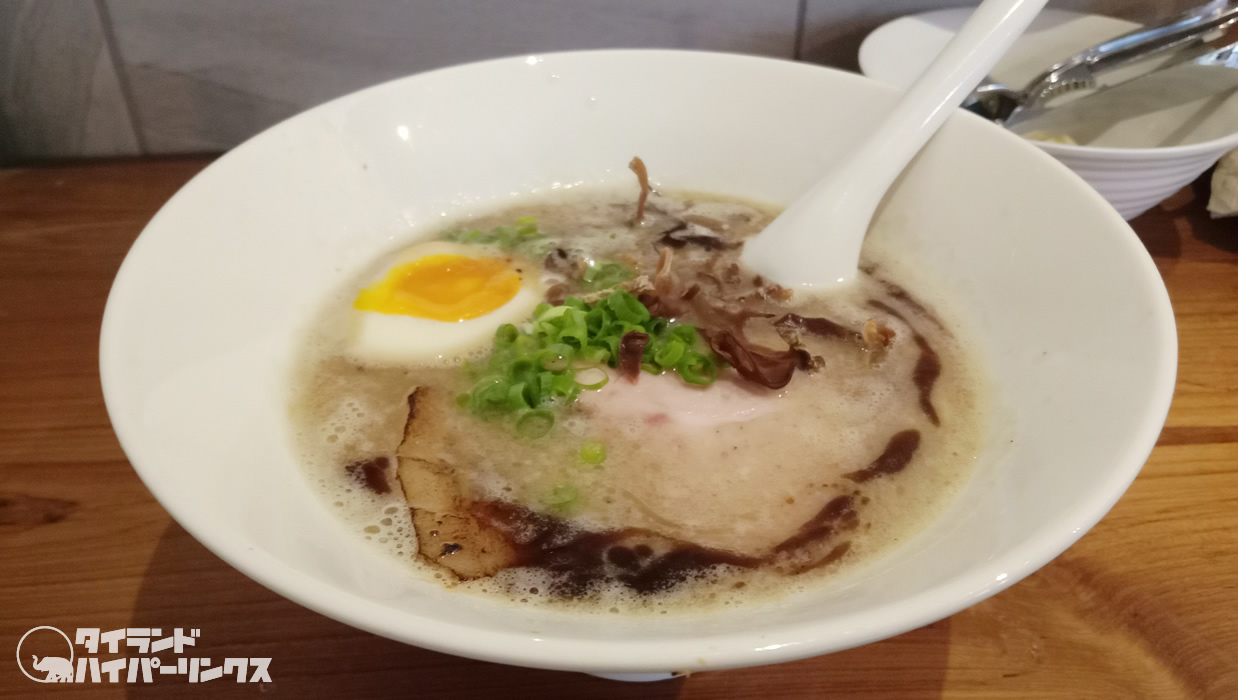 スープは「いかにも豚骨」というよりは、ちょっと鶏白湯のような感覚がありましたね。スープまで飲み干して、完食。ラーメン激戦区バンコクでも勝負できそうな、そんな風に思えるチェンマイ「三昧ラーメン」でした。