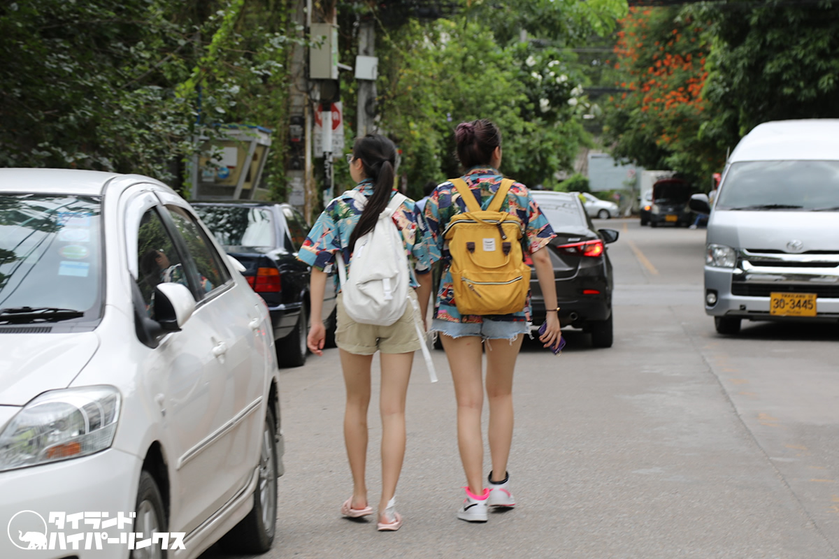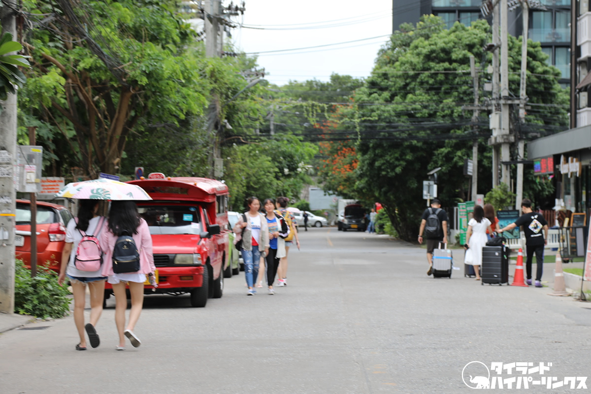 実際にニンマーンヘーミン通りを見てみると、ターペー門の辺りに比べて明らかに歩いている人の年齢が若く、女性の比率がとても高いのです。