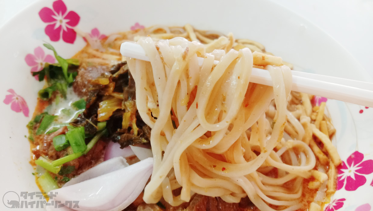 麺はこんな感じ。何店かカオソイの店を回ってみると、麺も色々違うようです。