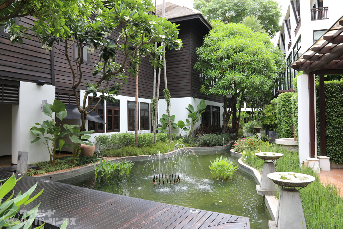 中庭のプールとフィットネス、朝夕のYOGAも~チェンマイ「ラリンジンダ ウェルネス スパ リゾート」