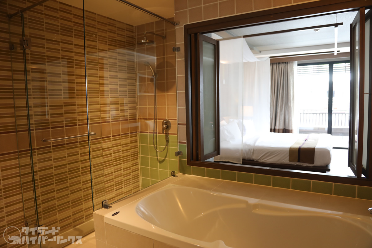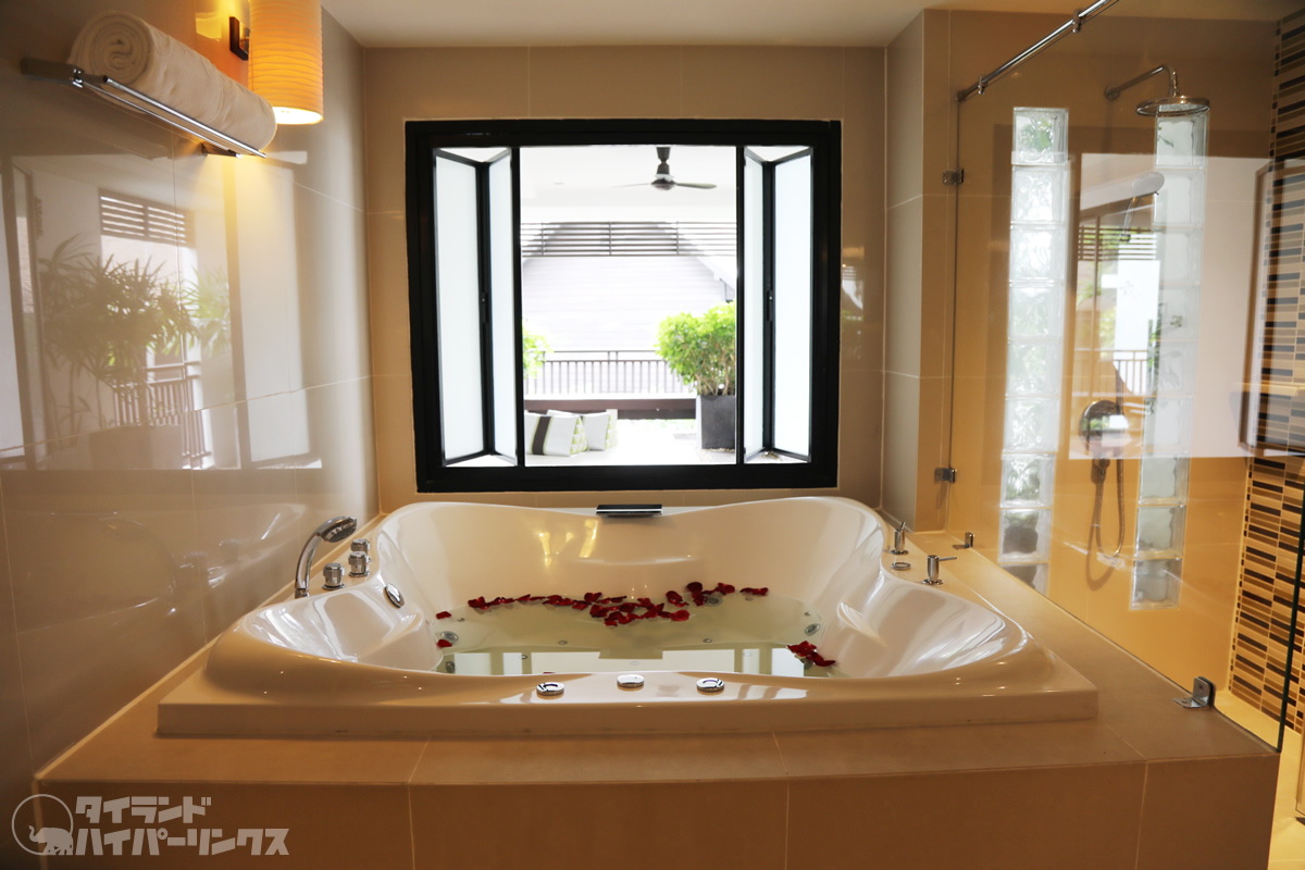 当然バスタブもあります。窓を開けた開放感の中で、ゆっくりとお湯に浸かりたいですね。