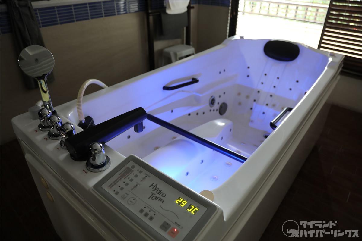 最新の設備も導入しています。温水での治療を行うハイドロセラピータブに・・・