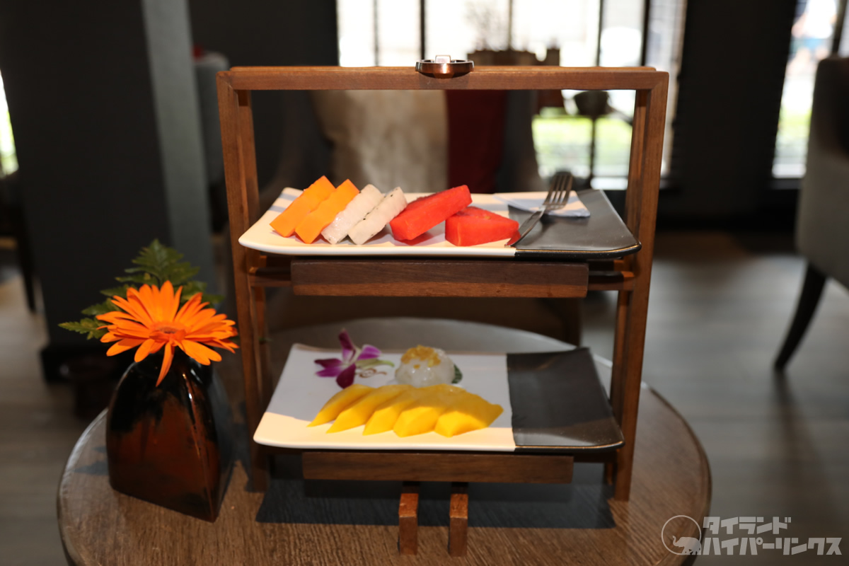 さらに、パパイヤ、スイカ、ドラゴンフルーツといった南国の果物と、モチ米にマンゴーを添えてココナッツミルクをかけたデザート「カオニャオマムアン(ข้าวเหนียวมะม่วง)」のセットも。1時間30分のマッサージを終えて、ちょっとお腹が空いていたので、これは嬉しいサービスです。
