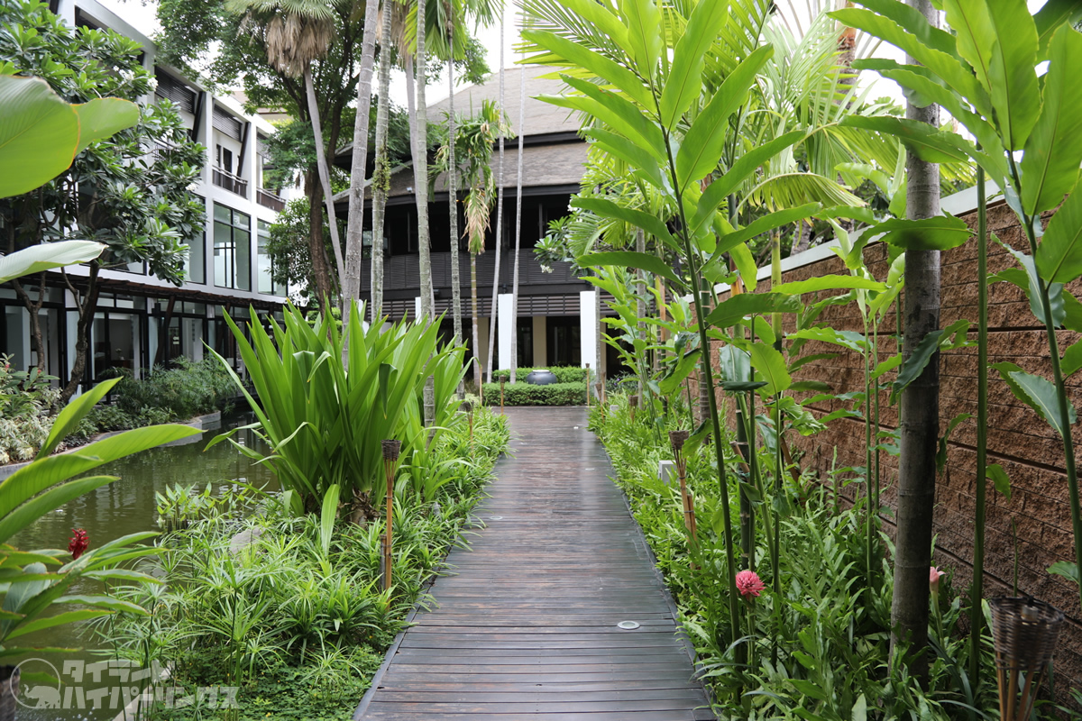 ホテル側からは、緑豊かな道を通ってスパへ向かいます。