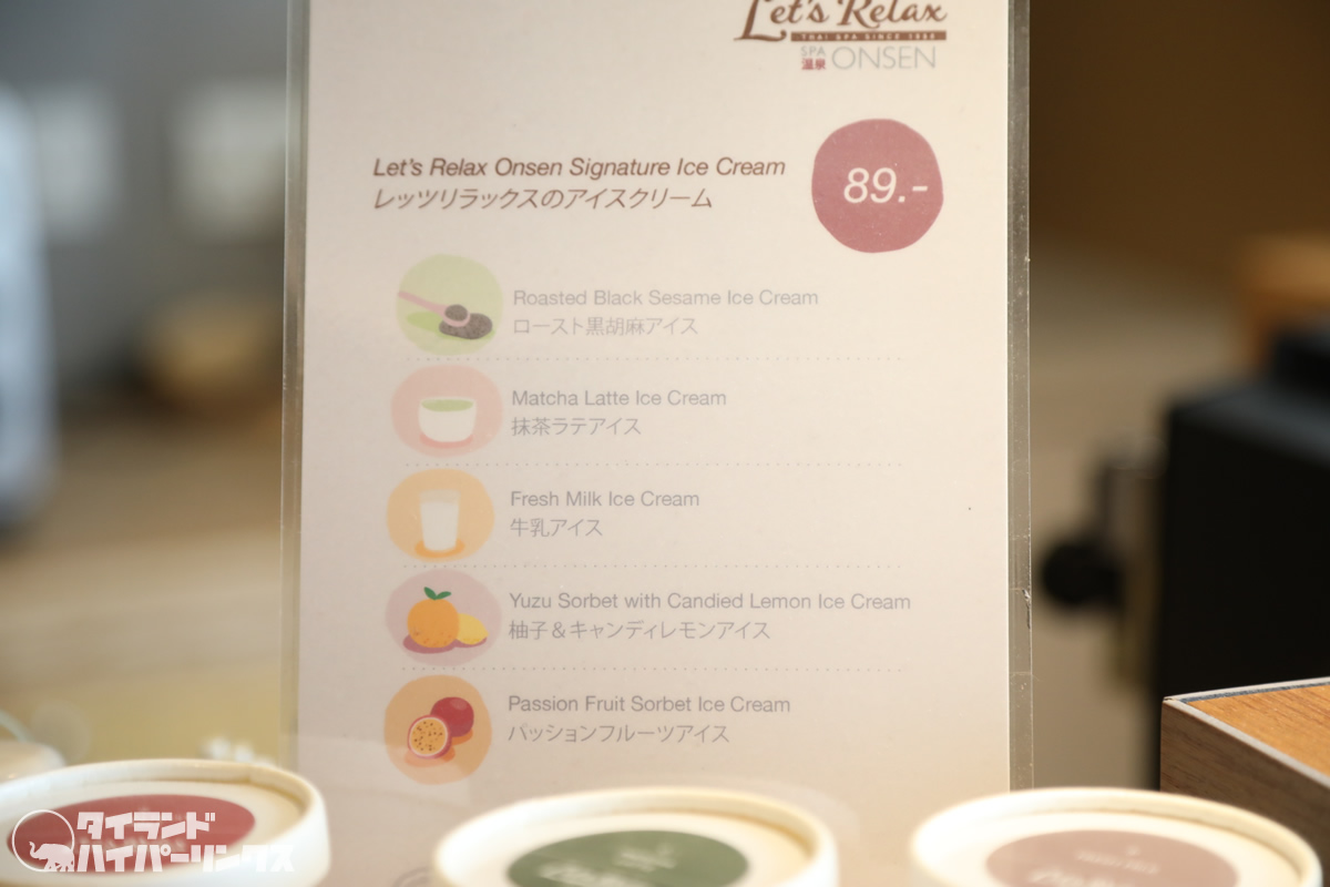 スナックバーにはアイスクリームもありますので、食後や風呂上がりにどうぞ。