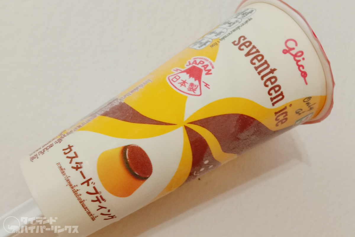 実はこの「セブンティーンアイス カスタードプディング」は、パッケージに書かれている通り日本製。日本のグリコのウェブサイトによると「カスタードアイスとミルクアイスを組み合わせ、カラメルソースを添えたスティックアイスです。」だそうです。