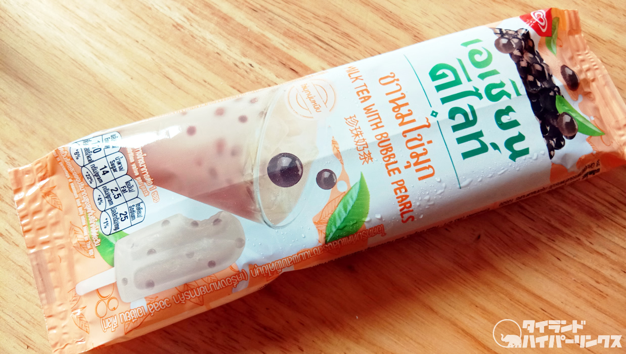 ウォールズ(WALL’s)は、昔からタイで高シェアを誇るアイスクリームブランド。そのウォールズから発売されたのが、「アジアンデザート(เอเชียน ดีไลท์)」シリーズのタピオカピルクティーのアイスクリームです。下の写真の黒く見える部分がタピオカ。