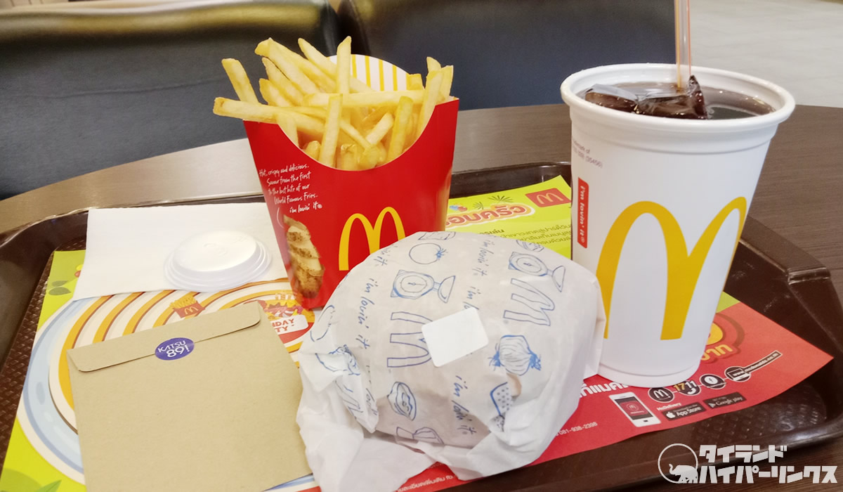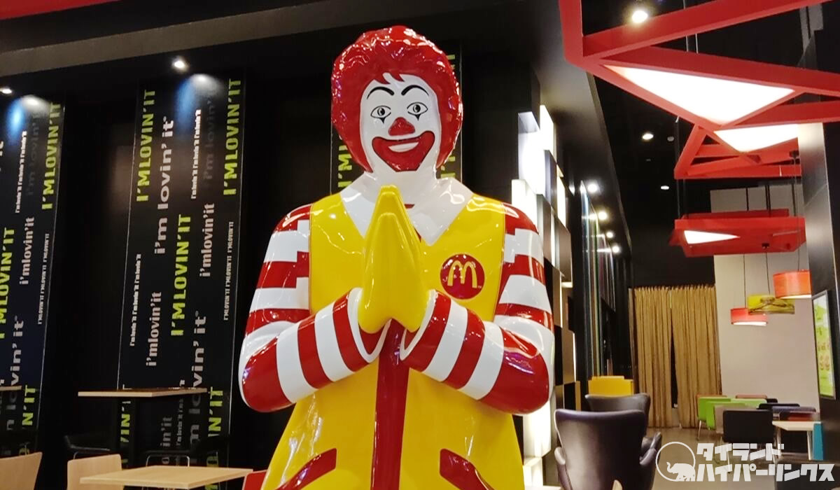 タイ全国で248 店舗を展開するマクドナルド。店頭のワイ(合掌)をしたドナルド・マクドナルド人形と一緒に記念撮影をしたという人も多いですね。